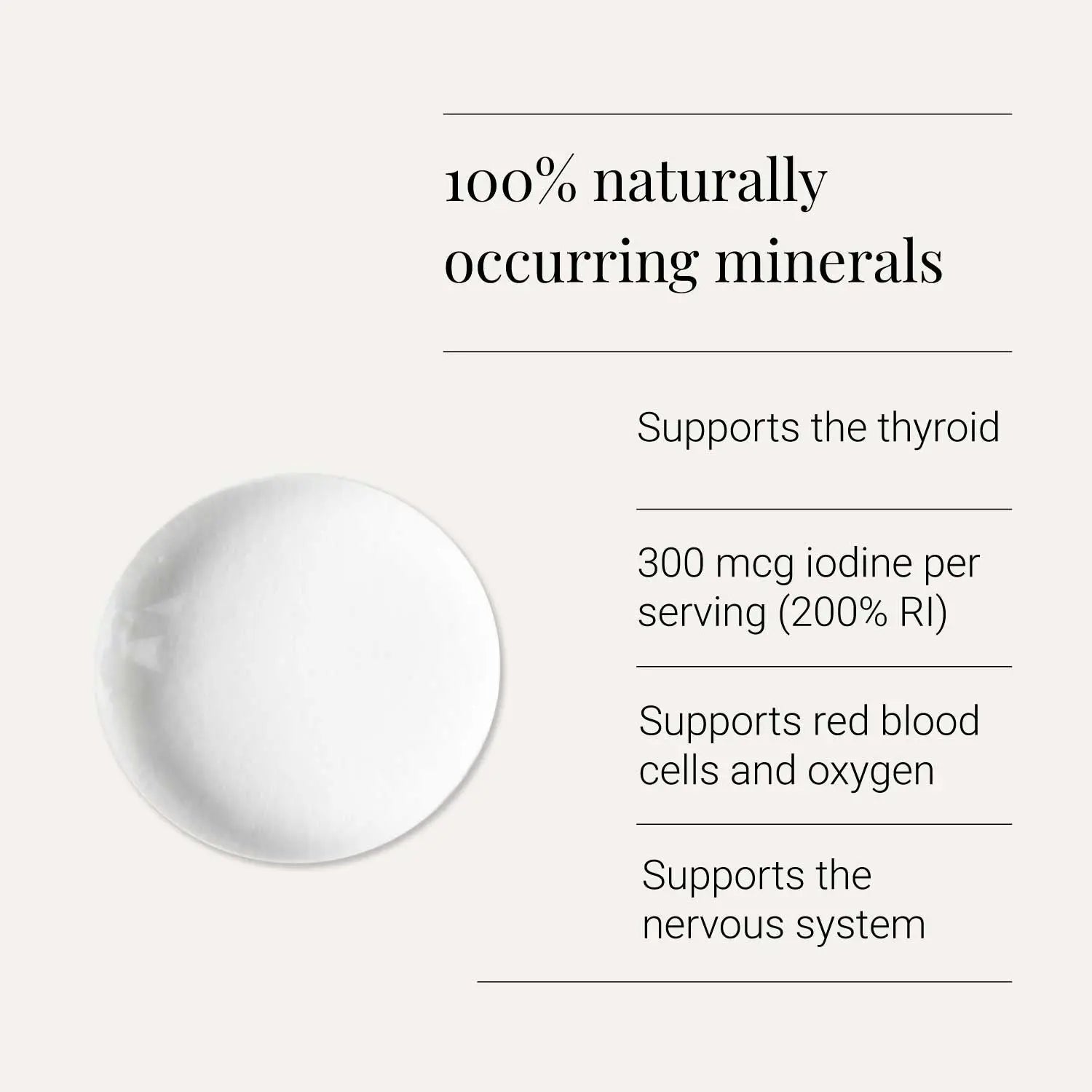 Iodine helps to maintain normal energy-yielding metabolism, normal function of the nervous system, normal skin, normal thyroid hormone production and function, and normal cognitive function.